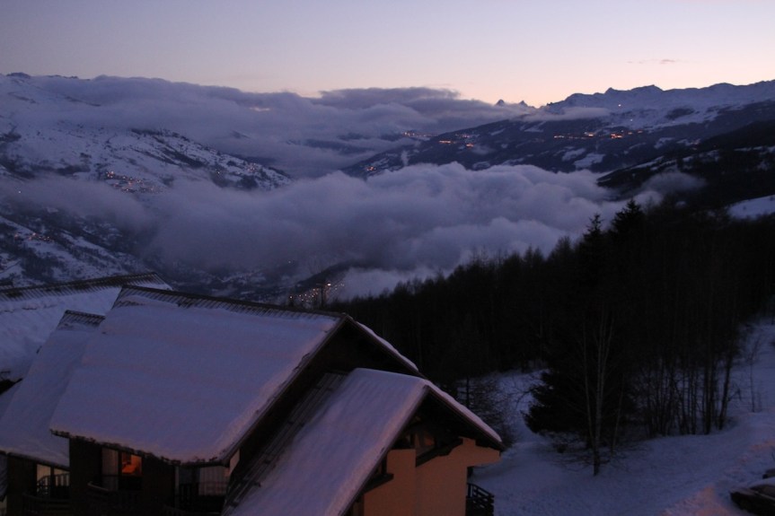 ‘La Plagne was created in 1961, as with many resorts in the Alps, to save the valleys from becoming deserted. The agriculture and mining industries were in crisis, which led to young people leaving the valley in search of work. In 1960, four towns (Aime, Bellentre, Longefoy and Macôt) created an association to defend their interests, with an initiative of Dr. Borrionne, mayor of Aime. On 24 December 1961, La Plagne opened, with its two drag lifts and its four slopes.’ Montalbert is one of the mountain villages in this bigger La Plagne area and has access to more than 100 kilometres of ski slope. It’s a typical small ski resort town with a few restaurants, bars, delicatessens and one little supermarket. Accommodation is self catering chalets and we were right on the slope, which means you exit you’re chalet dressed in you’re ski-suit and boots and ski down to the ski-lift! No bus commuting or other tedious exercise to get into the fun and action, its right there on your doorstep.