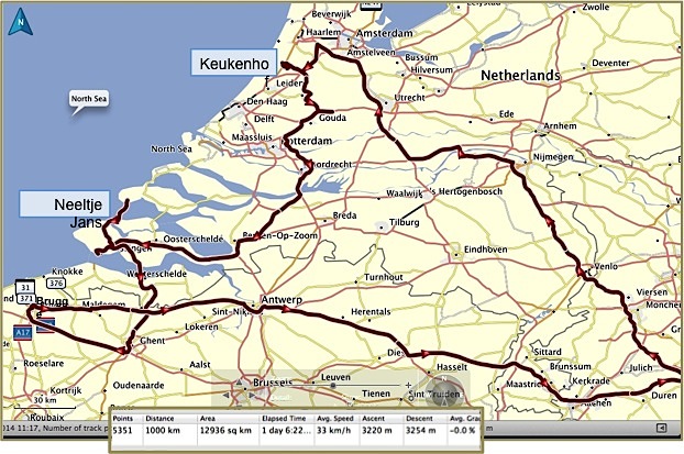 A practical benefit of the open borders nowadays – on Sunday we stopped in Roetgen at a small supermarket to by an onion and iced coffees. The ‘left’ side of the road was in Belgium, where shops are open on Sundays, while across the road on the ‘right’ side, the shops were closed, because in Germany, the shops are closed on Sundays. We had onion on our burgers that evening, and ‘woema’ in our tanks for the Hautes Fagnes climbs ahead.